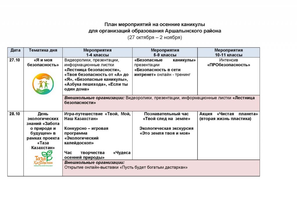 Күзгі демалыс жоспары