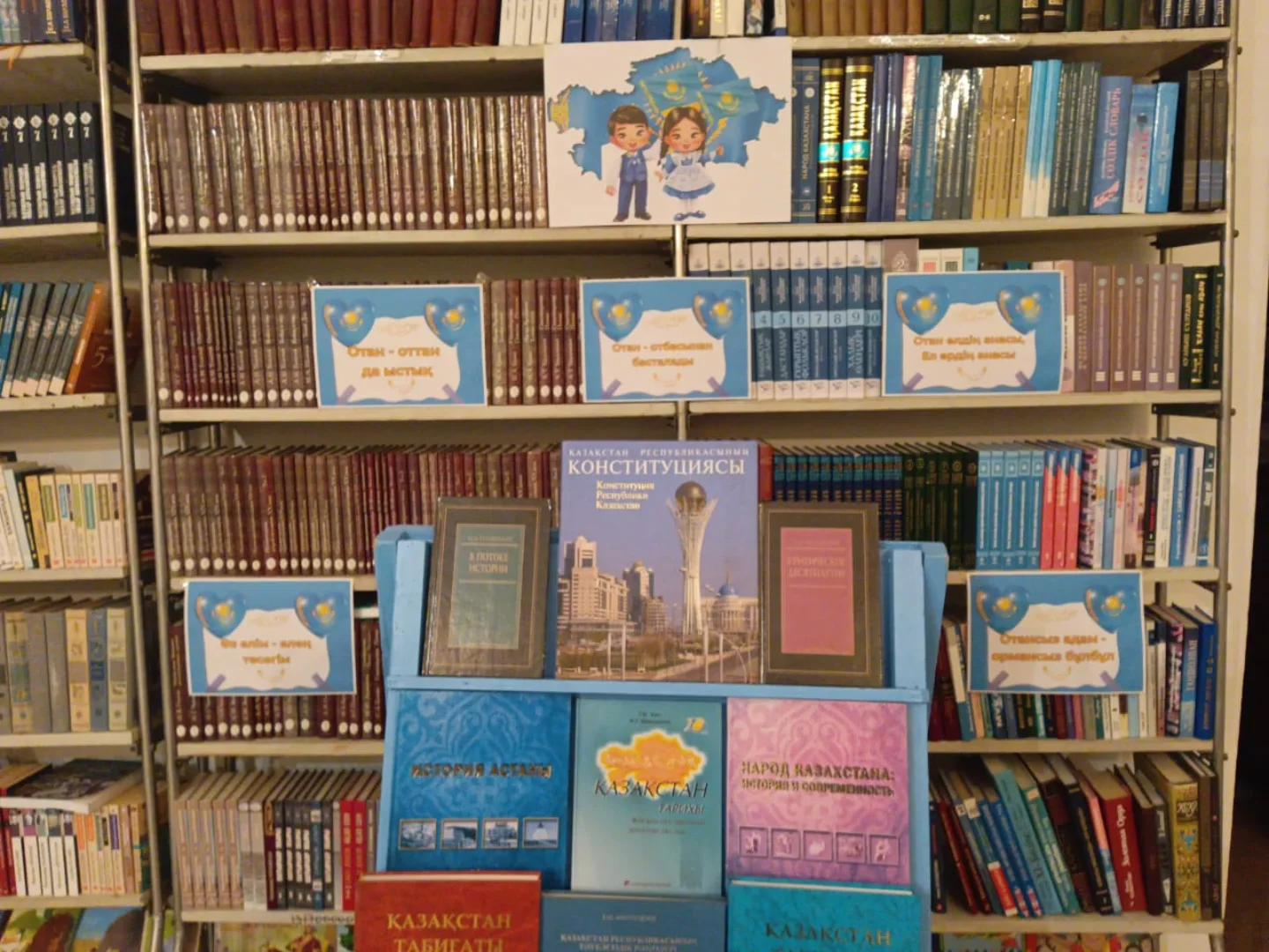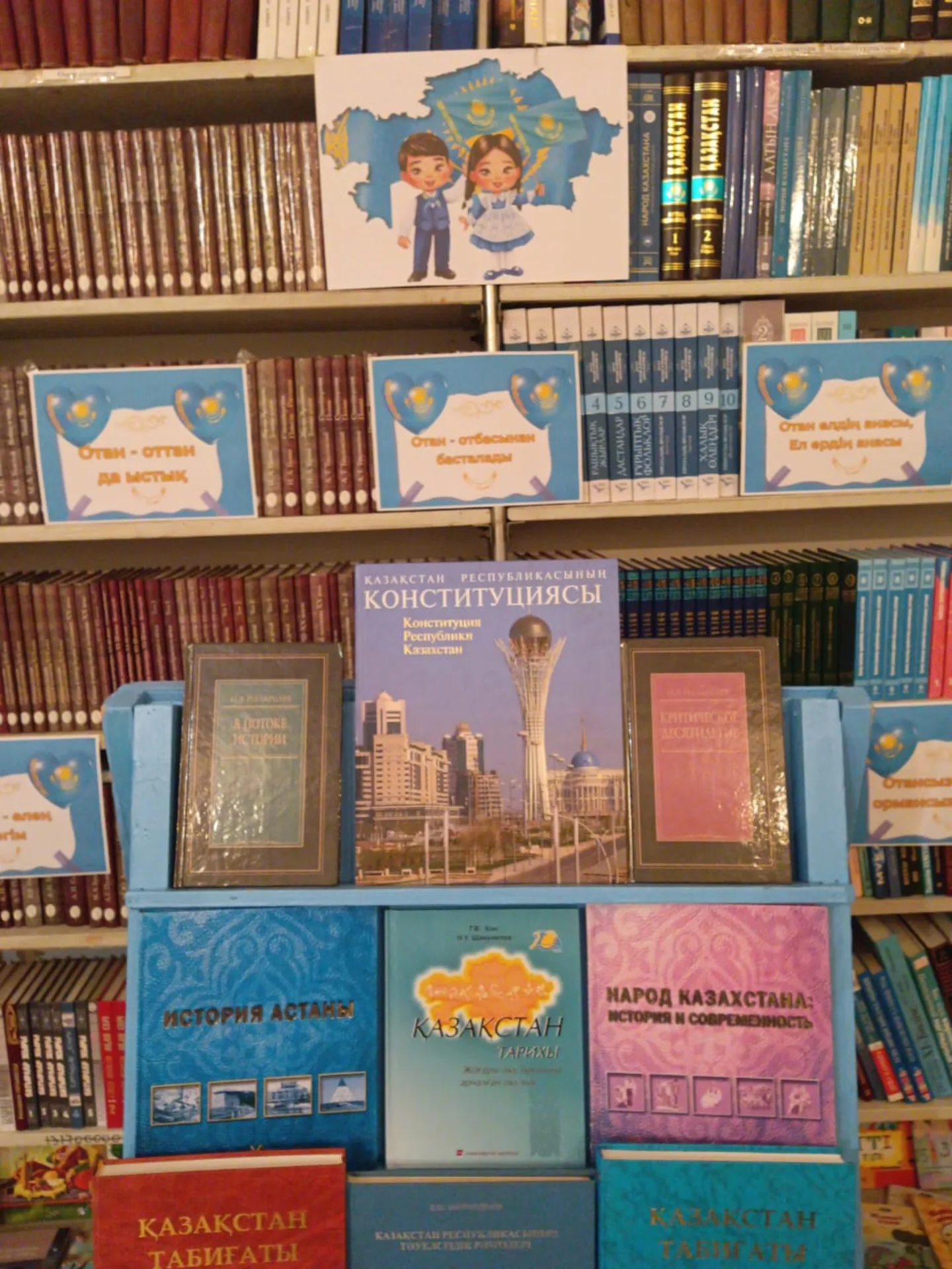 Мектеп кітапханасында Қазақстан Республикасының Конституциясы күніне арналған көрме қойылды